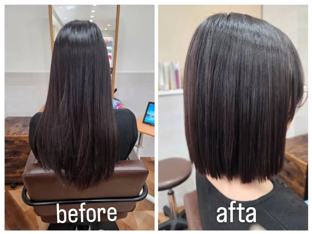 ロングからバッサリ切りっぱなしボブに🌸 2026/04/19 ロングからバッサリ切りっぱなしボブに🌸 #髪質改善#白髪染め#女性スタッフのみ#駐車場あり#札幌美容室 大谷地で髪質改善を目指す施術 髪質改善